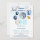 Invitación Galaxy Blue Gold Espacio Ultraterrestre Primer Cum
