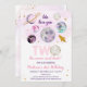 Invitación Galaxy Two The Moon Pink Gold Space Birday