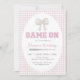 Invitación Game On Baseball Bow Pink Gingham Preppy 5th