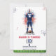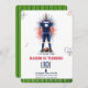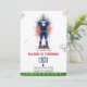 Get ready for some "Game Time" fun with this dynamic American Football Birthday! 🏈 Perfect for boys and sports fans of any age, this design features a striking watercolor illustration 🎨 of a football player in a patriotic red, white, and blue uniform. The background is enhanced with vibrant watercolor splashes and fun football play diagrams and X's and O's, giving it an authentic sports feel. A bold football rests at the player's feet, emphasizing the sporty theme. The bottom border features a classic green turf design with yard markers. 🏟️