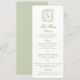 Invitación Garden Wedding Sage Green Monogram Crest Menu Card