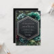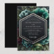 This dramatic wedding design features a moody and opulent floral arrangement. Deep garnet and vibrant teal blossoms emerge from a dark, shadowy background, creating a sense of rich romance. The painterly style, reminiscent of old master still-life paintings, is perfect for an elegant, artistic union.