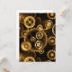 Sin soldadura, metalizado, latón, engranajes dorados sobre un fondo oscuro y oxidado. Estilo Steampunk.