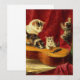 Tarjeta que presenta la pintura al óleo de Henriëtte Ronner-Knip Haciendo Música (1900). Una gata madre observa mientras sus dos gatitos juegan con una guitarra mientras otro gatito araña una cortina roja y otro gatito se esconde detrás de libros. Un regalo maravilloso para amantes de los gatos y entusiastas del Romanticismo.