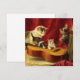 Tarjeta que presenta la pintura al óleo de Henriëtte Ronner-Knip Haciendo Música (1900). Una gata madre observa mientras sus dos gatitos juegan con una guitarra mientras otro gatito araña una cortina roja y otro gatito se esconde detrás de libros. Un regalo maravilloso para amantes de los gatos y entusiastas del Romanticismo.