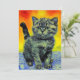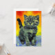 Tarjeta que presenta un gato al estilo Van Gogh. Este gatito negro se relaja en las aguas azules de una playa. Una puesta de sol de rojo y amarillo llena el cielo. Un regalo maravilloso para amantes de los gatos y coleccionistas de arte holandés!