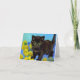 Tarjeta que presenta un gato al estilo Van Gogh con girasoles. Un lindo gatito negro posa con flores amarillas. Un regalo fabuloso para amantes de los gatos y coleccionistas de arte holandés.