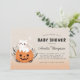 Invite a sus huéspedes con estilo con esta encantadora ducha de bebé, que incluye un ilustracion inspirado en Halloween de un gato sentado en una calabaza. El fondo naranja claro aporta un toque festivo y acogedor, perfecto para una ducha de bebé temática. Todo el texto es totalmente personalizable, lo que le permite personalizar los detalles de su evento especial.