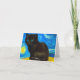 Tarjeta que presenta un gato Van Gogh en el estilo de Noche estrellada. Un gatito negro esponjoso se posa en una mesa contra un cielo nocturno azul y una luna amarilla. ¡Un regalo perfecto para los amantes de los gatos y coleccionistas de arte holandés!