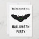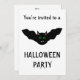 Esta espeluznante invitación a la fiesta de Halloween muestra un temible murciélago vampiro con la cara de un gato. El murciélago está volando con las alas estiradas y tiene los ojos verdes del mal de un gato espeluznante y algunos colmillos blancos aterradores. Esta quimera espeluznante es la criatura perfecta para una Halloween inquietante. Hay texto de personalizable en la parte trasera para que puedas personalizar esta invitación.