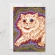 Tarjeta con la pintura animal de Louis Wain Kaleidoscope Gatos III (1860-1939). Un gato blanco psicodélico está rodeado de vivos colores morados, azules, verdes y amarillos. Un regalo maravilloso para los amantes de los gatos y el arte inglés.