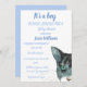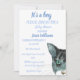 ¡Es un chico! Ilustracion de gatito gris, bebé, invitación a ducha de bebé neutra de género. Ducha de bebé. Rústico, gato, acuarela pintura de Monika Howarth. Naturaleza, mascotas, ilustracion azul invitación a la ducha de bebé. Personalízalo con tus detalles.