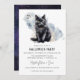 Famosas pero lindas invitaciones a la fiesta de Halloween presentando un ilustracion acuarela de un gato negro en una neblina ominosa. El texto es totalmente editable, y se puede cambiar a una fiesta de cumpleaños temática de Halloween o a cualquier otro evento. El lado inverso es un cielo oscuro y estrellado.