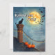 Fijar el tono para una noche espeluznante y divertida con esta invitación a la fiesta de Halloween que incluye un gato negro con silueta encaramado en una chimenea, una luna llena brillante, murciélagos balbuceadores y acogedoras luces de cuerda sobre una fila de calabazas. El diseño combina fantasía y encanto, perfecto para fiestas de disfraces familiares o sólo para adultos.