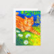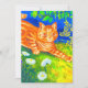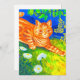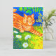 Tarjeta que presenta la pintura de animales de Louis Wain Gato Acechando (1860-1939). Un gato atigrado naranja camina por un campo verde por la noche. Flores blancas, moradas y rojas están en primer plano. Un regalo maravilloso para los amantes de los gatos y el arte inglés.
