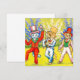 Tarjeta con la pintura animal de Louis Wain Three Cats Performing a Song and Dance Act (1860-1939). Tres gatos antropomorfados con túxdos y sombreros de primera y bailan y cantan con sus pañuelos y bastones. Un regalo maravilloso para los amantes de los gatos y el arte inglés.