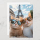 Dos gatos elegantes posan frente a la Torre Eiffel, haciendo gafas de sol mecedoras y capturando el último selfie de viaje en un día soleado en París.