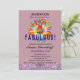 Retro "¡50 y Fabulous!" o cualquier personalizable de edad luminoso y alegre invitación de cincuenta años. Con el logo de un arcoiris en negrita en la parte delantera y trasera y el purpurina morado en un fondo malva en la parte delantera. Esta es una gran invitación para las celebraciones de cumpleaños multiculturales LGBTQ / gay y lesbiana orgullo / diversidad / trans / inclusivo. Puede cambiar fácilmente el color de fondo, el número de año "50", el nombre y los detalles del evento con los botones Editar diseño y personalización de Zazzle.