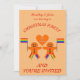 Esta impresionante invitación a la fiesta de Navidades presenta una imagen de arte digital de una linda pareja de hombres gay con pan de jengibre. Los hombres de pan de jengibre tienen en sus piernas lindes de color arcoiris que coinciden con los colores de la bandera del orgullo. Tienen botones verdes y rojos y cada uno ondea una bandera de color arcoiris. Ambos tienen una gran sonrisa. Hay un corazón de pan de jengibre encima de la pareja que muestra su amor por el otro. Hay una escritura blanca dentro del corazón que dice "hecha para el otro". Esto sería un regalo encantador para una pareja gay en Navidades. Hay un texto personalizado en la parte frontal y posterior para una personalización completa.
