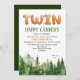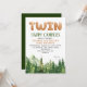 Invitación Gemelos Feliz Campers Madera Selva Verde Primer cu