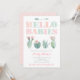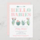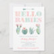 Invitaciones a la ducha de bebé, rosa y menta, que incluyen cactus acuarela / imágenes de pera espinosa. Como el texto es "HOLA BABIES", este diseño funcionaría bien para bebés gemelos o una ducha de bebé conjunta donde ambas madres dan la bienvenida a las niñas.