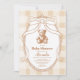 Invitación Género Neutral Gingham Teddy Bear Baby Shower