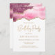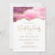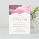 En esta moderna invitación al cumpleaños se puede apreciar una acuarela de un ágate geodésico en tonos rosas, adornado con falsos toques de purpurina dorado. Las palabras "fiesta de cumpleaños" aparecen en un falso purpurina de oro en letra decorativa moderna de escritura a mano. Personalizar con el nombre del honorario en letras oro art deco y los detalles del fiesta en sans serif dorado tipo sobre fondo blanco. La misma imagen rosa de agate aparece en el reverso.