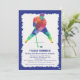 Una invitación a la moda con un jugador de hockey de forma geométrica con marco azul grunge. Perfecto para cualquier aficionado al hockey de edad.