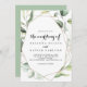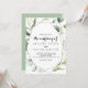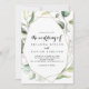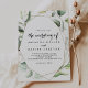 Este verde oro geométrico y elegante, el boda de la invitación, es perfecto para una boda elegante. El diseño se basa en hojas de eucalipto botánico pintadas a mano, adornando un marco geométrico dorado.