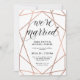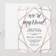 Estas invitaciones de "estamos casados" ultra-elegantes y modernas presentan un diseño geométrico de falso oro rosa sobre un fondo blanco limpio, e incluyen tipografía caligráfica negra moderna. ¡La forma perfecta de invitar a amigos y familiares a una ceremonia o recepción post-boda!