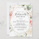 Esta invitación geométrica a la ducha de brunch de las damas de honor verde oro es perfecta para una moderna ducha de boda. El diseño está decorado con un marco geométrico elegante, en tonos verde botánico y dorado pintado a mano, con flores blancas, rosas y rosas.