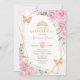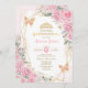 ¡La invitación perfecta para la quinceañera de tu hija está por fin aquí! Esta moda y encantadora invitación a la quinceañera cuenta con elegantes flores color agua rosado, una tiara purpurina de oro brillante y dos mariposas revoloteadoras. Haga clic en el botón "personalizar adicional" si desea reorganizar y formatear el estilo y la ubicación del texto.