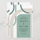 Un giro moderno en un glamuroso ambiente art decó de antaño, esta colorida invitación a la boda tiene formas geométricas curvadas entrelazadas alrededor de la disposición de texto de la invitación. Los colores incluyen la popular paleta de colores de la forma verde marino y beige neutro de marfil que enmarca el texto. Los resultados son únicos y artísticos con un atractivo retro. Esta paleta de colores es una excelente elección para bodas en la playa o en el destino.