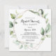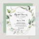 Esta geométrica y elegante invitación a la fiesta de la ducha de novia dorada es perfecta para una simple ducha de boda. El diseño se basa en hojas de eucalipto botánico pintadas a mano, adornando un marco geométrico dorado.