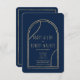 Elegante azul marino, y oro geométrico archiconocido invitación a la boda. Esta elegante invitación a las bodas en azul marino y oro es perfecta para cualquier chica de moda elegante y sofisticado. Este diseño es ideal para un evento fiesta moderno y elegante. Personalizar este diseño con su propio mensaje e información personalizada. Todos los diseños están impresos.