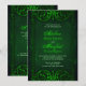 Estas invitaciones góticas a las bodas victorianas en un verde brillante y brillante son perfectas para los bodas de Halloween, con un marco adornado y anticuado y rápido, contra un fondo verde oscuro, ligeramente texturado y morboso. El texto es una combinación de escritura en grunge, letras clásicas fáciles de leer en bloque, y de estilo medieval inglés antiguo. Personalizar la parte de atrás con la información de recepción y RSVP para guardar la necesidad de tarjetas de gabinete, o borra esos campos para dejar la parte de atrás en blanco.