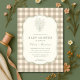 Soft beige and ivory gingham baby shower invitation featuring a delicate floral bow design. Created for parents who love timeless charm with a neutral, gender neutral color palette. Ideal for baby showers, brunch celebrations, garden parties, and cozy gatherings. Editable text. Clean print-ready layout.