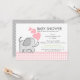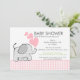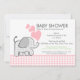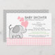 Invitación a la ducha de bebé de elefantes dulces con un patrón de chequeo de gingham gris y corazones rosados. Cambiar el color de fondo para cambiar el color de patrón base si se prefiere.