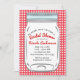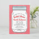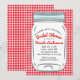 Invitación Gingham Rojo y Frasco de Mason Azul Rustico Campes