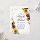Invitación de boda Girasol Borgoña Rojo Rubor Peonía Rosa Diseño presenta una hermosa media corona de girasol acuarela, peonías y elementos florales de rosa en varios tonos de rosa pálido, rojo borgoña, Marsala/ciruela y más sobre vegetación pintada.