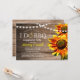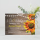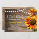 Elegante y rústico Sunflower 'I DO BBQ' Invitación a la fiesta de compromiso con un fondo rústico de madera, dos girasoles amarillos y naranjas, luces de cuerda y una plantilla clásica de fiesta de compromiso que es fácil de personalizar.