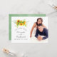 Tarjetas de foto de boda de girasoles pintadas a mano con aguarela tendencia con fondo de lavado de aguarela verde salvia.
