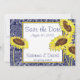 Damasco azul real con girasoles amarillos brillantes. Adornos correspondientes al color en los diferentes estilos de tarjetas, esto es parte de nuestra colección de bodas de Girasoles Azules Reales y Amarillos - una colección de mezcla y coincidencia para satisfacer las necesidades de su boda.