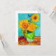 Tarjeta que presenta la pintura de naturaleza muerta de Vincent van Gogh que representa un ramo de girasoles en un jarrón verde. Parte de su versión inicial en la serie Girasoles de Arlés. Un gran regalo para los fanáticos de las pinturas de flores, el Postimpresionismo y el arte holandés.
