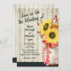 El campo rústico del otoño girasoles en el fondo de la madera caen todo en una boda invitación - Añade todos los detalles de tu boda al dorso de esta invitación. -