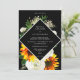 Consiga que sus invitados estén de humor para divertirse con esta invitación de boda de girasoles y rosas blancas. en negro