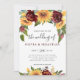 Invitación de boda de girasoles y rosas rojo borgoña con vegetación - Un diseño impresionante que presenta vibrantes girasoles y rosas en acuarela en varios tonos de oro, rojo borgoña y vino con vegetación natural. La escritura moderna y la tipografía única complementan el diseño. Puede cambiar fácilmente el color de fondo. Vea nuestra colección para productos coordinados.