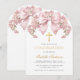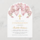 Invitación Girl Confirmation Pink Bow Floral & Cross Elegant