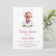 Celebrate the imminent arrival of your bundle of joy by inviting your friends and loved ones to your baby shower with this invitation featuring a teddy bear wearing pink overalls playing jump rope. The customizable text allows you to effortlessly add your name, date and time of the celebration, and the RSVP information. A variety of paper types and corner styles are available for your unique invitations, along with the option to download if you prefer a digital format.