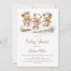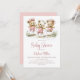 Invitación Girl Teddy Bears Wearing Pink Polka Dot Overalls